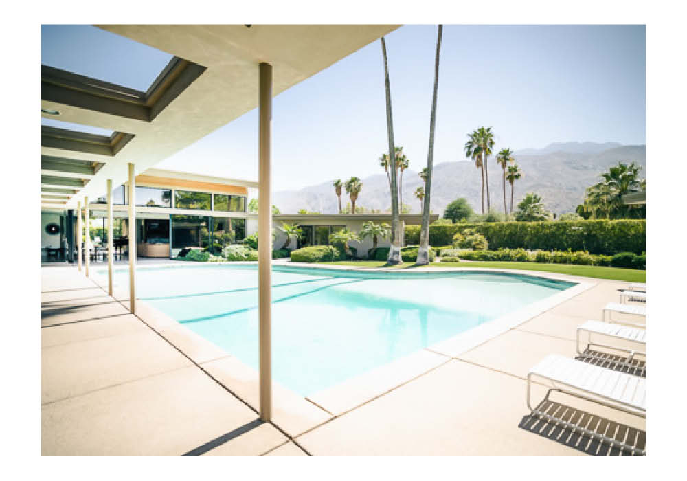 Le Poster photographique Palm Spring Pool Side, édité par David & David, offre une vue iconique du domaine Twin Palms, célèbre résidence de Frank Sinatra, située au cœur de Palm Springs, en Californie. Capturant l’essence de l’architecture moderniste du milieu du XXe siècle, cette photographie met en lumière l’élégance intemporelle des lignes épurées et l’harmonie entre l’espace intérieur et extérieur.