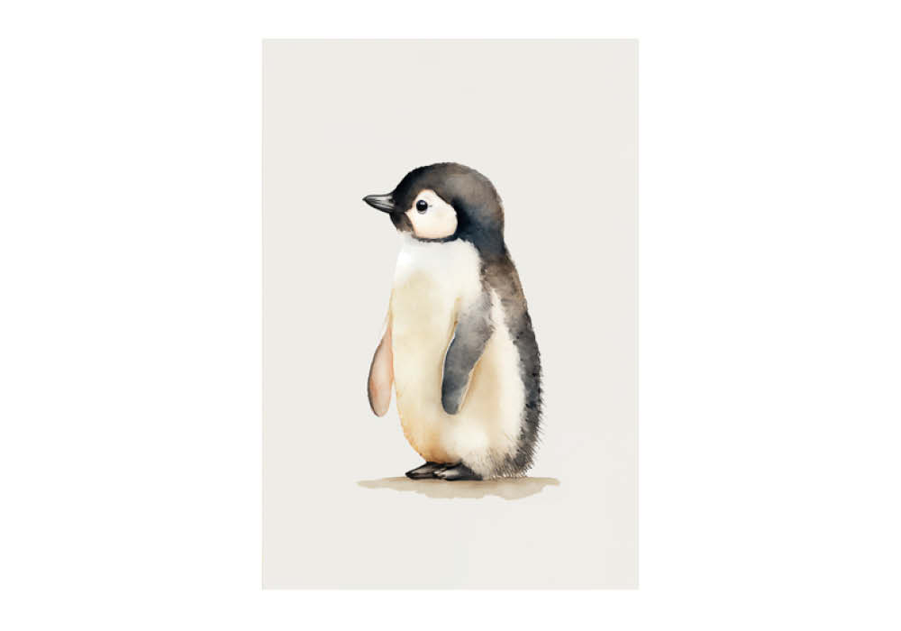 L'Affiche Baby Penguin, éditée par David & David, dévoile une tendre illustration à l’aquarelle d’un jeune manchot. Avec son pelage duveteux et son regard curieux, ce petit compagnon incarne la douceur et l’innocence, idéal pour insuffler une ambiance chaleureuse dans une chambre d’enfant.