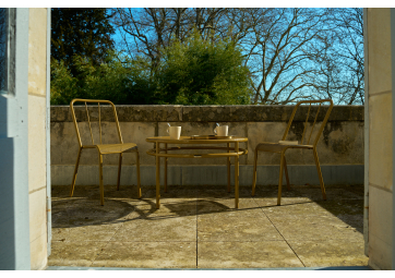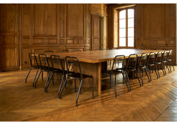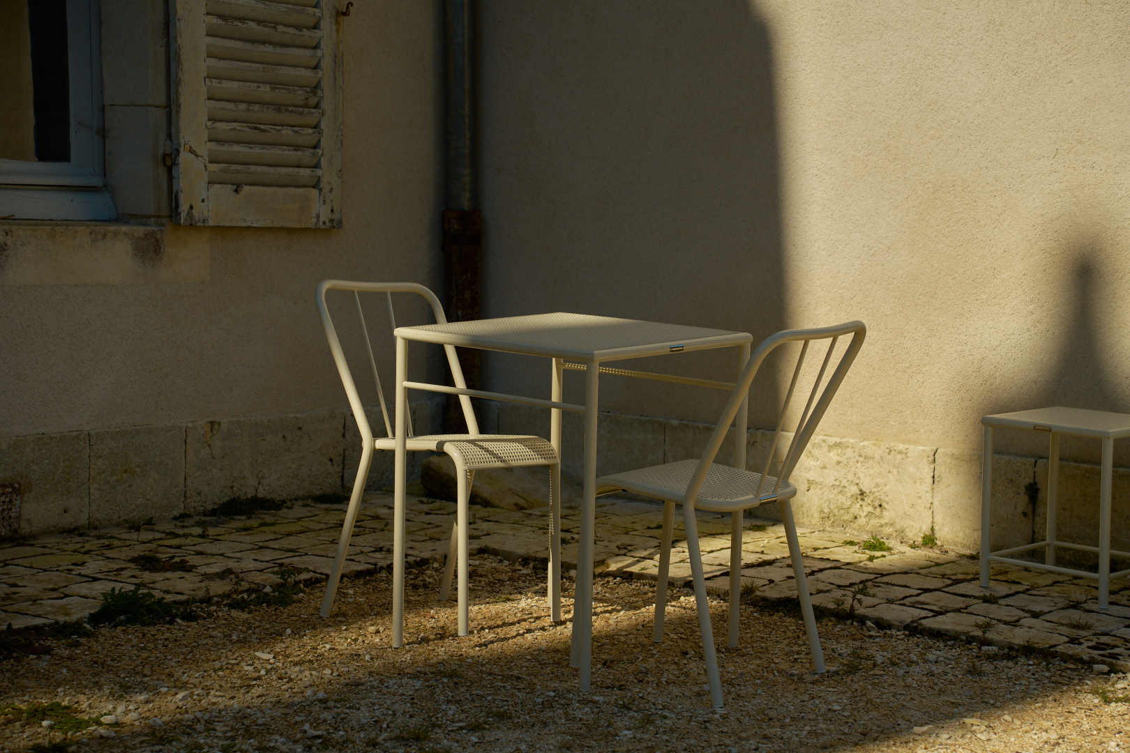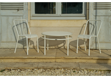 La structure tubulaire de la T37 est emblématique du mobilier Tolix : minimaliste, robuste, intemporelle. Le plateau, ici proposé dans sa version tressée à la main, se distingue par une trame métallique ajourée qui capte la lumière et joue avec les ombres, créant un effet graphique subtil et raffiné. Une finition qui rappelle les techniques de vannerie, en écho aux racines rurales et au travail manuel.