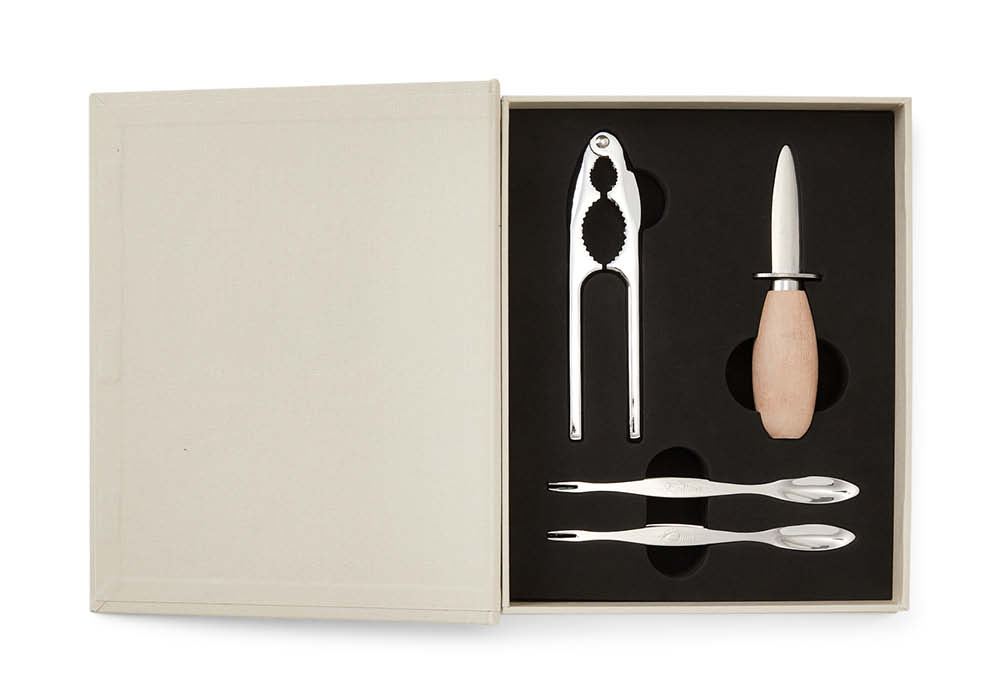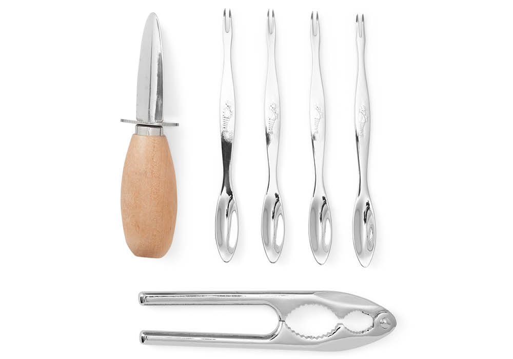 Inclus dans ce kit :• 1 couteau à huîtres• 1 craquelin de coquille• 4 ustensiles pour fruits de mer